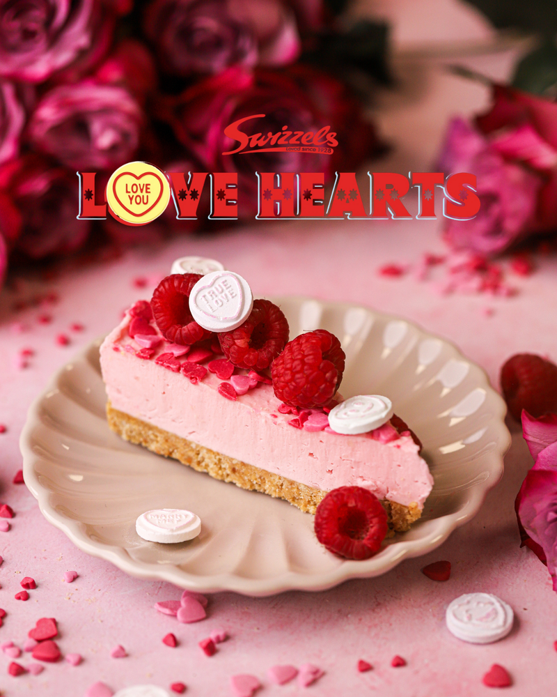 A deliciously vibrant cheesecake with the iconic taste of Love Hearts sweets. Topped with valentine's sugar decorations, on our signature crunchy biscuit base. The perfect way to say I love you this Valentine's Day!
