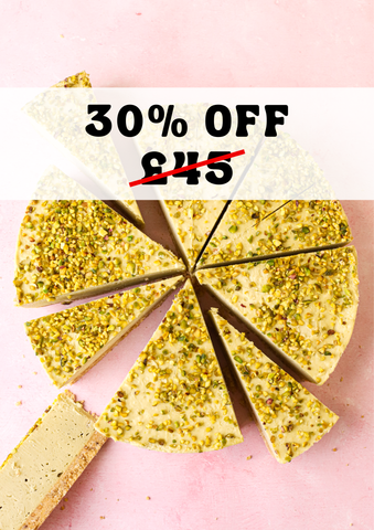 Creamy cheesecake meets the decadent nutty flavour of pistachio to create this ultimate moment of indulgence. As with all of our cheesecakes, our Pistachio cheesecake is made using only 100% British dairy, hand finished toppings and our unbeatable crunchy biscuit base!