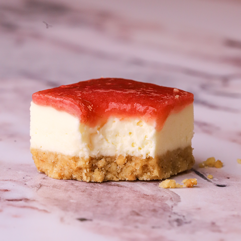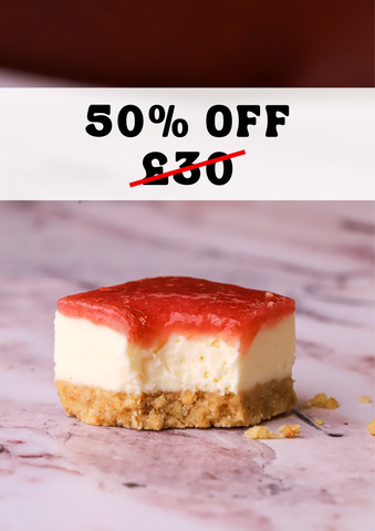 Creamy custard cheesecake, topped with a vibrant & fruity rhubarb compote, all on our signature crunchy biscuit base. An iconic flavour we all know and love, in the form of a perfectly portioned cheesecake slice!