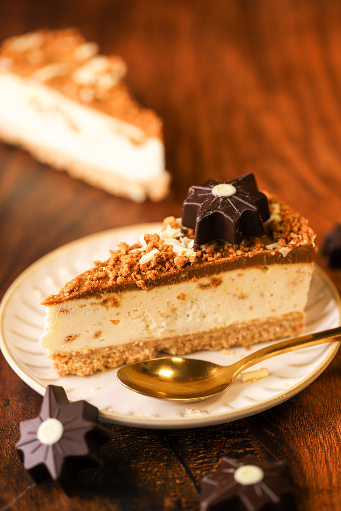 Creamy gingerbread cheesecake, with crunchy biscuit pieces, topped with a decadent layer of caramelised biscuit spread and crumb, on our signature crunchy biscuit base.